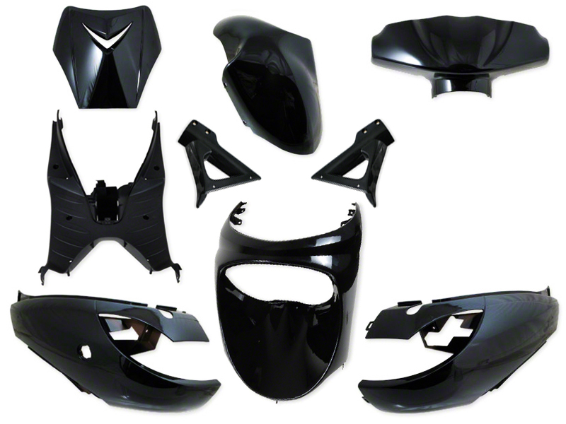 Kit carrosserie, plastiques de carénage en coloris noir brillant pour scooter 50cc :