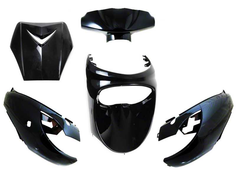 Kit carrosserie, plastiques de carénage en coloris noir brillant pour scooter 50cc :